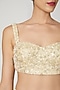Featuring a beige bustier in georgette base with pearls and sequins floral hand embroidery. It is paired with a skirt and a net dupatta. Accentuate it with statement jewellery and heels for a festive occasion or engagement ceremony.