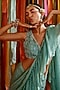 Featuring a mint green pre-draped ruffle saree in georgette base with cutdana, 3D flowers and beads embroidery. It is paired with a net blouse. Accentuate it with statement jewellery and heels for weddings or festive occasions.