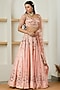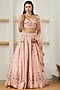 Featuring a soft pink lehenga in silk base with sequins, resham, and mirror embroidery. It is paired with a matching blouse and a cutwork dupatta.