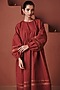 Featuring a brick red midi sack dress in cotton linen base with balloon sleeves, gathered and gota detail. Accentuate it with oxidised stud earrings and a woven jutti for a stylish ensemble, ideal for festive occasions or family get-togethers.
