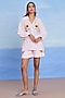 Featuring a fleur top in linen base with machine embroidery, billowy sleeves and a band collar. It is paired with shorts. Accentuate it with statement earrings and flats for a holiday look.