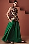 Featuring green flared pants in cotton linen base with structured pleats. Accentuate it with a top, oxidised jhumkas and a woven jutti for a stylish ensemble, ideal for festive occasions, mehendi ceremony or family get-togethers.