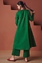 Featuring a green straight kurta in cotton linen base with pockets. It is paired with pants and a chanderi dupatta. Accentuate it with oxidised stud earrings and a woven jutti for a stylish ensemble, ideal for festive occasions or family get-togethers.