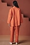 Featuring a marigold orange oversized shirt in cotton linen base. It is paired with pleated pants. Accentuate it with oxidised stud earrings and a woven jutti for a stylish ensemble, ideal for festive occasions or family get-togethers.