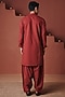 Featuring brick red draped dhoti in cotton linen base. Accentuate it with a kurta, kolhapuri sandals for a festive occasion or an intimate pooja ceremony.