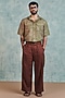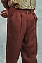 Featuring chocolate brown baggy pants in pure linen base. Style it with a shirt and shoes for get-together, casual outing or vacation wear.