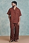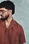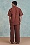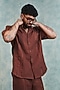 Featuring a chocolate brown shirt in pure linen base with mother-of-pearl buttons, camp collar and chest pocket details. Style it with pants and shoes for get-together, casual outing or vacation wear.