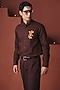 Featuring a coffee brown shirt in cotton linen base with floral embroidery and band collar. Accentuate it with pants and shoes for casual, office or brunch wear.