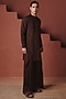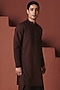 Featuring a coffee brown kurta in cotton linen base with band collar. It is paired with wide-legged trousers. Accentuate it with kolhapuri sandals for a festive occasion or an intimate pooja ceremony.