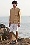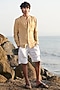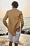 Featuring a dark beige shirt in pure linen base with band collar and mother-of-pearl buttons. Style it with linen pants and shoes for a casual, brunch or vacation wear.