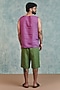 Featuring a moss green jorts in pure linen base. Style it with a shirt and sandals for a casual, beach or vacation wear.
