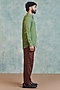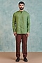 Featuring a moss green shirt in pure linen base with mother-of-pearl buttons and band collar. Style it with pants and shoes for a get-together, casual outing or office wear.