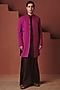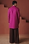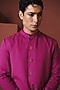 Featuring an orchid purple jacket in cotton linen base with pockets, side slits and band collar. Accentuate it with a kurta set and mojaris for a festive occasion or an intimate pooja ceremony.