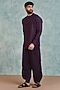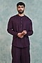 Featuring a plum shirt kurta in pure linen base with band collar. Style it with pants and kolhapuri sandals for a festive occasion, cultural event or pooja ceremony.