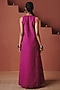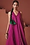 Featuring an orchid purple flared maxi dress in cotton linen base with a V-neckline. Accentuate it with oxidised stud earrings and a woven jutti for a stylish ensemble, ideal for festive occasions or family get-togethers.