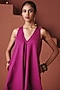 Orchid Purple Cotton Line V-Neck Flared Dress