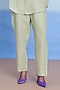 Featuring a pista green oversized flared shirt in linen base with machine embroidery. It is paired with pleated pants. Accentuate it with statement earrings and flats for contemporary look.