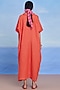 Featuring a tangerine kaftan in linen base. Accentuate it with statement earrings and heels for a complete look.