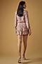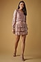 Featuring a pink top in viscose lurex base with floral print and smocking detail. It is paired with a ruffled layer skirt. Style it with dangler earrings and heels for a complete look.