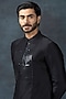 Featuring a black kurta in chanderi silk base. It is paired with matching pants.