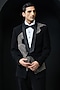 Featuring a black tuxedo in sandwash base with silver zari, pearls and cutdana embroidery. It is paired with a shirt, pants and a bow. Style it with shoes for a wedding, engagement ceremony or cocktail, exuding charm and timeless elegance.