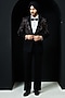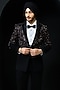 Featuring a black tuxedo jacket in sandwash base with pearl and crystal detailing. It is paired with a pintex shirt, pants and a bow. Perfect attire for festive occasions or wedding ceremonies, exuding traditional charm and elegance.