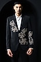Featuring a black blazer in twill base with thread work. It is paired with pants. Perfect for a wedding, sangeet or engagement ceremony, exuding charm and elegance.