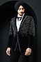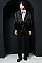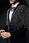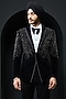 Featuring a black tuxedo jacket in velvet base with pearl and crystal detailing. It is paired with a pintex shirt, pants and a bow. Perfect attire for festive occasions or wedding ceremonies, exuding traditional charm and elegance.
