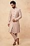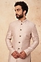 Featuring a dusty rose indowestern jacket in raw silk base with dagai embroidery. It is paired with matching pants.