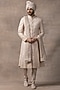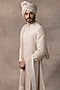 Featuring a dusty rose anarkali sherwani in organza, kota and silk base with sequins, pearl and thread work. It is paired with a matching kurta, pants, a pair of shoes, a dupatta and a safa fabric.