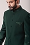 Featuring an emerald green indo western jacket in sandwash base with patchwork embroidery. It is paired with contrasting cotton silk pants and a kurta. Perfect wear for a wedding or engagement ceremony.