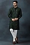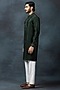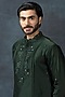 Featuring a forest green kurta in cotton silk base with thread work. It is paired with contrasting pants.