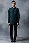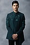 Featuring a green indowestern jacket in sandwash base with panel and thread work. It is paired with contrasting pants.