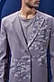 Featuring a grey tuxedo in crepe base with thread embroidery. It is paired with a t-shirt and pants. Perfect wear for a wedding or reception ceremony, exuding charm and elegance.