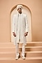 Ivory Cotton Silk Sequins Work Sherwani Set
