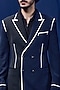 Featuring a navy blue and black blazer in twill base. It is paired with pants. Perfect for a wedding, sangeet or engagement ceremony, exuding charm and elegance.