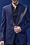 Featuring a navy blue blazer in twill base with silver zari work. It is paired with pants. Perfect for a wedding, sangeet or engagement ceremony, exuding charm and elegance.