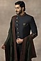 Featuring a navy blue indo-western in sandwash base with thread spring work. It is paired with contrasting pants and a thread work shawl.