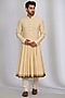 Beige Silk Printed & Embroidered Sherwani Set