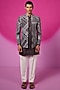Featuring a grey open indo-western jacket in silk base with thread work, leather, crystals hand and machine embroidery. It is paired with a dark grey kurta kurta having lace border and off-white hybrid pleated salwar pants. Perfect wear for festive occasions or a wedding ceremony.