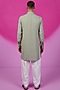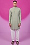 Featuring a sage green kurta in japanese chiffon base with dotted texture and mirror cutwork embroidery. It is paired with pleated hybric salwar pants. Perfect wear for festive occasions or a wedding ceremony.