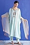 Featuring a blue kaftan in chanderi silk base with thread work and zardosi hand embroidery. It is paired with pants and an organza silk dupatta. Accentuate it with statement earrings and heels for any festive occasion.