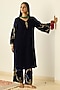 Featuring a blue kurta in velvet base with hand embroidery. It is paired with velvet pants and a pink organza silk dupatta. Accentuate it with kundan polki jewellery and juttis for festive celebrations, daytime functions or pooja ceremony.