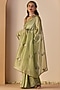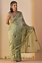 Featuring a green saree in tissue silk base with hand embroidery. It is paired with a tissue silk unstitched blouse piece. Accentuate it with jhumkas and embellished heels for a traditional yet elegant look, perfect for mehendi functions, festive gatherings and wedding celebrations.