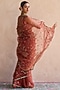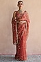 Featuring an orange patiala saree in organza silk base with thread work and zardosi hand embroidery. It is paired with a chanderi silk unstitched blouse. Accentuate it with statement jewellery and heels for a festive occasion or sangeet ceremony.