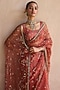 Orange Organza Silk Zardosi Hand Embroidered Saree Set