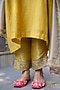 Featuring a yellow and grey kurta in chanderi silk base with embroidery. It is paired with tissue silk pants and a dupatta. Accentuate it with polki jewellery and block heels for festive celebrations or sangeet ceremony.