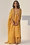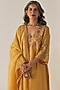 Featuring a yellow kurta in tissue silk base with hand embroidery. It is paired with tissue silk pants and a dupatta. Accentuate it with jhumkas and embellished heels for a traditional yet elegant look, perfect for family functions, festive gatherings and wedding celebrations.