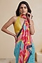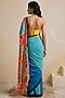 Blue Silk Georgette Color-Blocked Saree Set