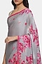 Featuring a grey saree in satin and georgette base with floral print. Accentuate it with a blouse, dangler earrings and block heels for wedding ceremonies.